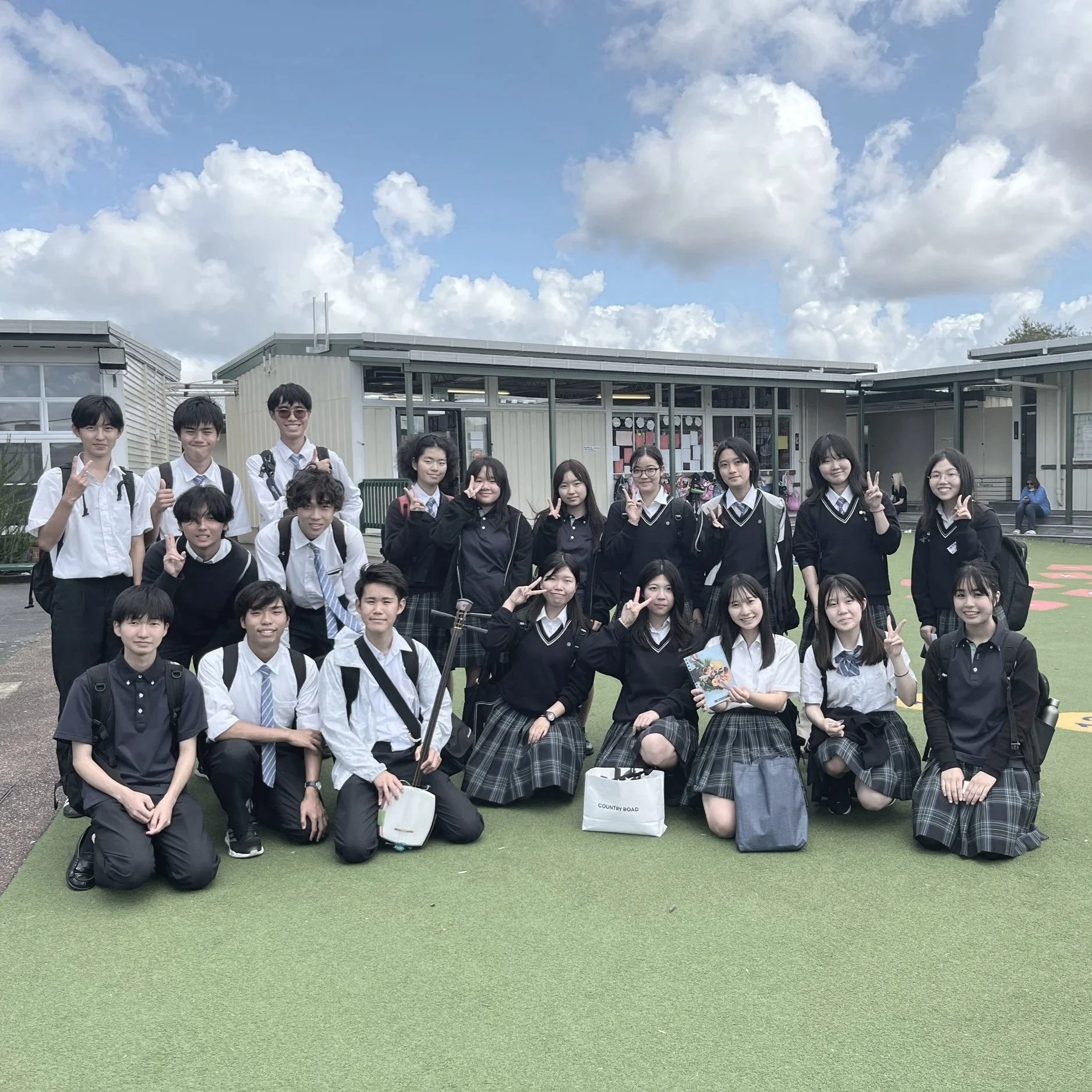 現地では留学生20名のグループで、現地小学校と中学校で日本文化紹介ボランティアをしたり、オークランドJapan Dayでパフォーマンスをする機会にお繋ぎいたしました。